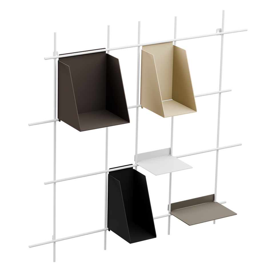 Unser Wandgitter mit smarten Ablageböden bringt Struktur in deinen Alltag und Design an deine Wand.